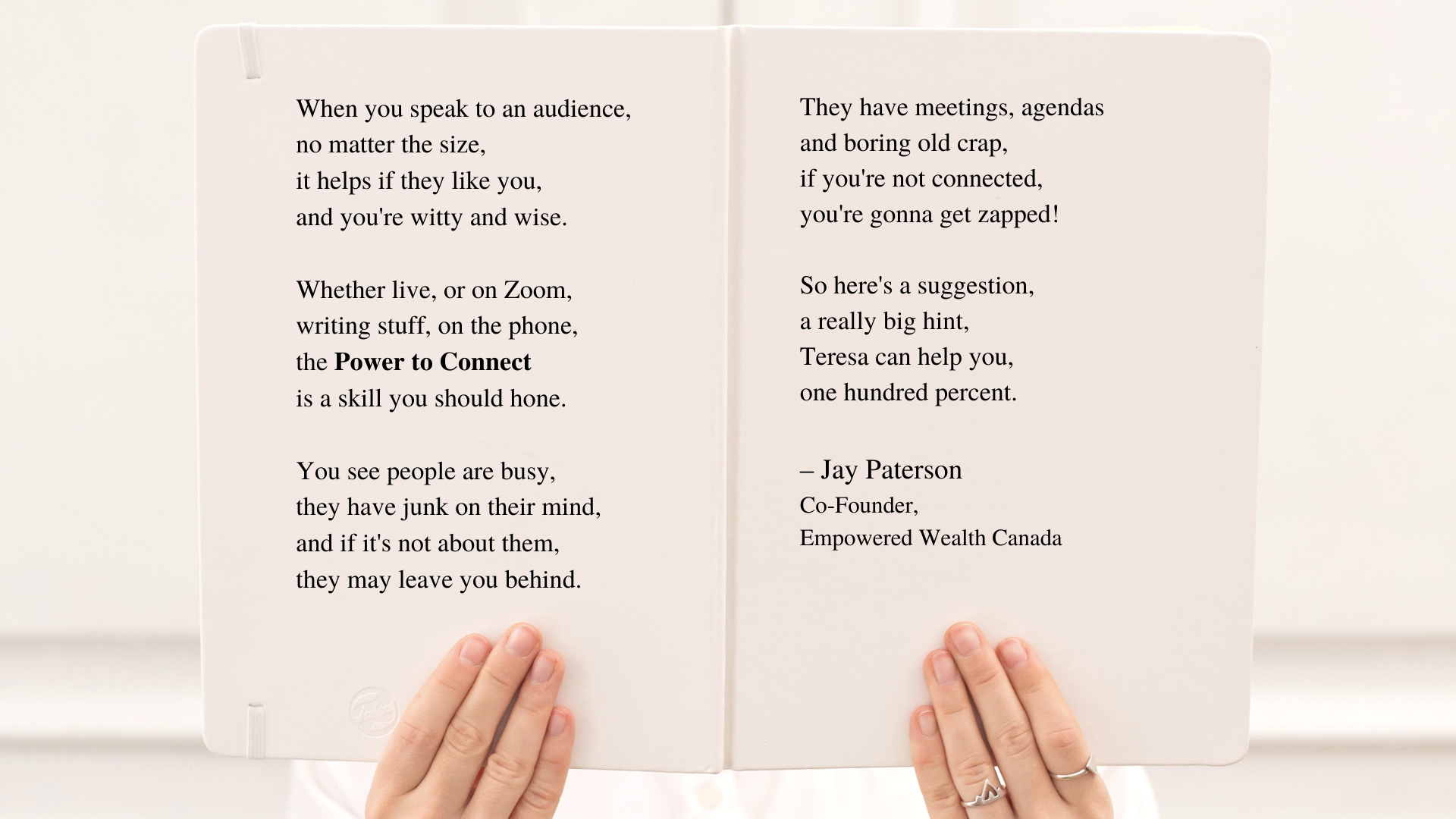 There are people all over the world who have transformed their communication skills with Teresa's support.